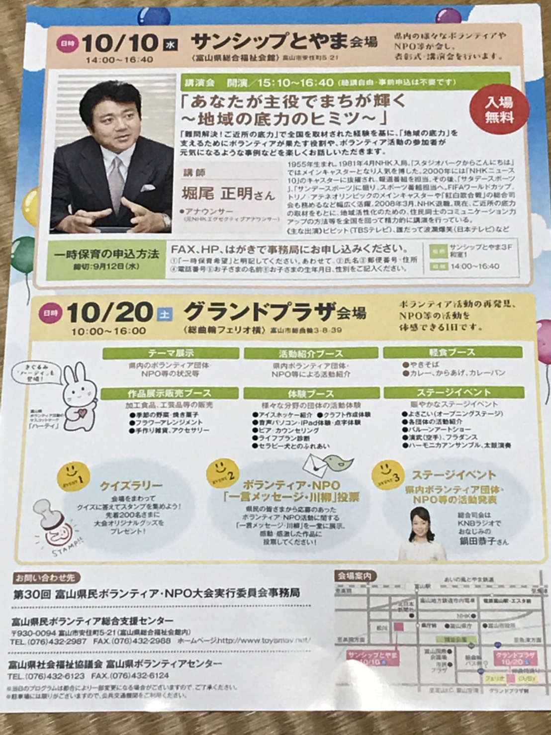 第30回富山県民ボランティア・NPO大会に参加します(*゚▽゚*)